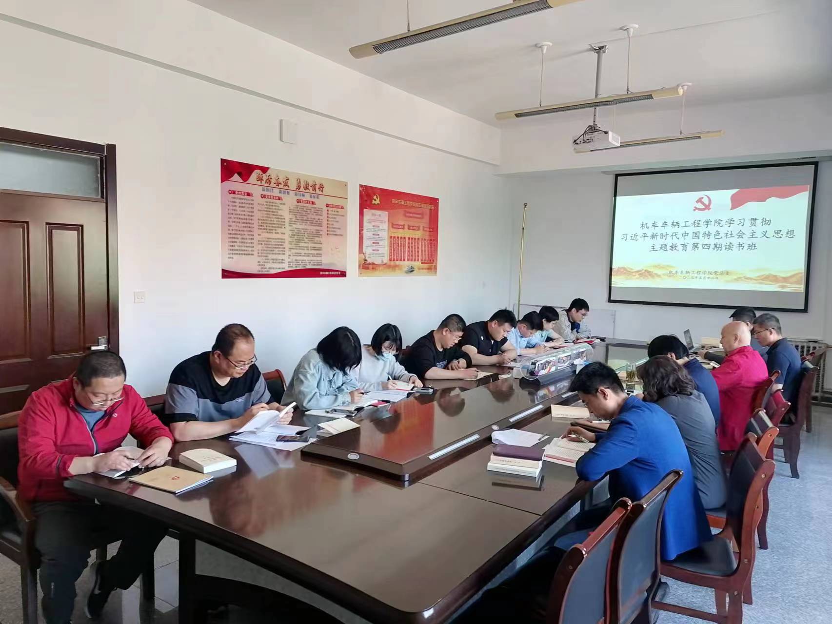 5月22日,机车车辆工程学院在党员活动室举办学习贯彻习近平新时代中国特色社会主义思想主题教育第四期读书班暨党总支理论学习中心组(扩大)学习研讨会,党总支委员、党支部书记和组织员参加会议,会议由学院党总支书记林玉英主持。
