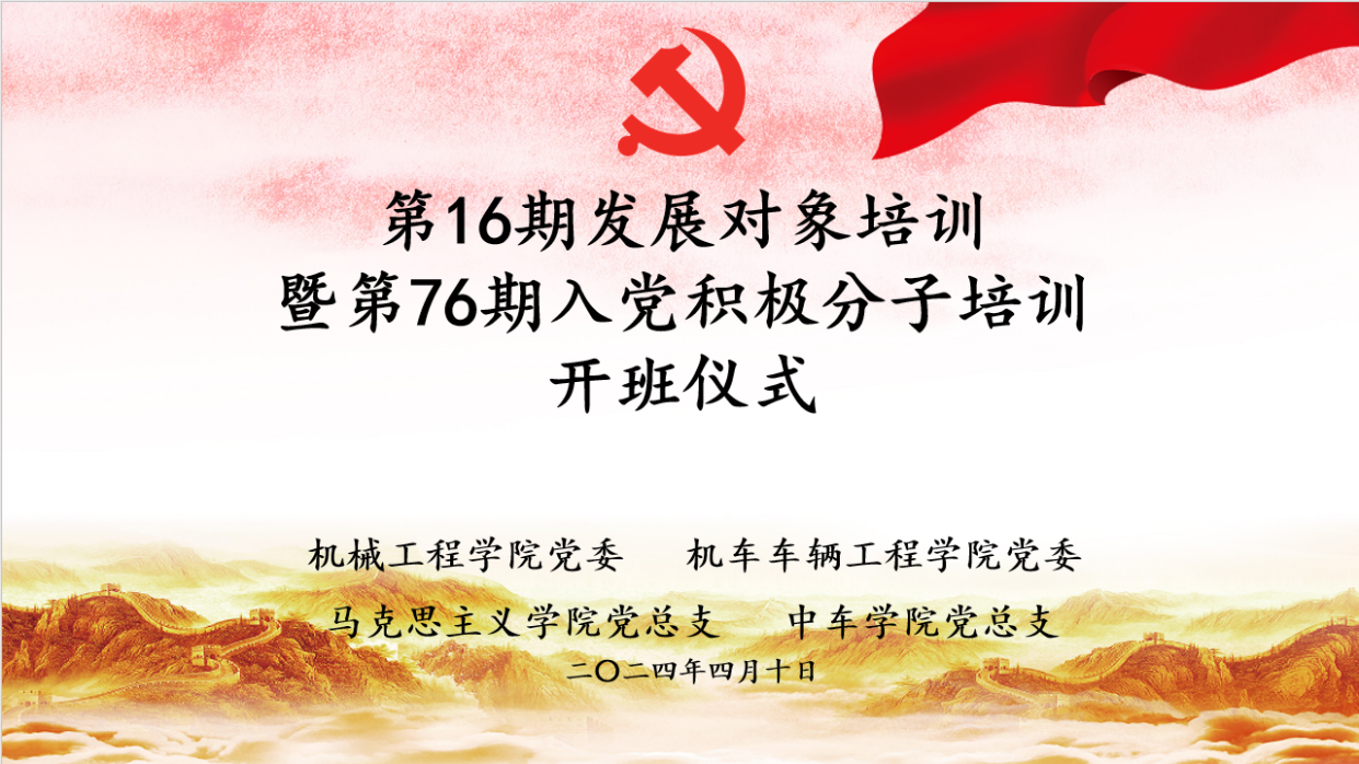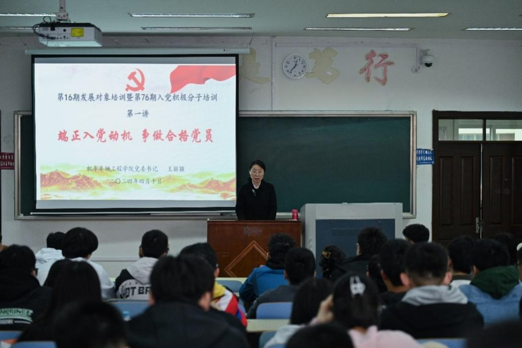 第16期发展对象暨第76期入党积极分子培训开班式、第一讲以及第二讲在沙河口校区举行,分别由机车车辆工程学院党委书记王丽颖以及马克思主义学院教师王建宇主讲,主题为《端正入党动机 争做合格党员》、《从党史看党章发展历程》。