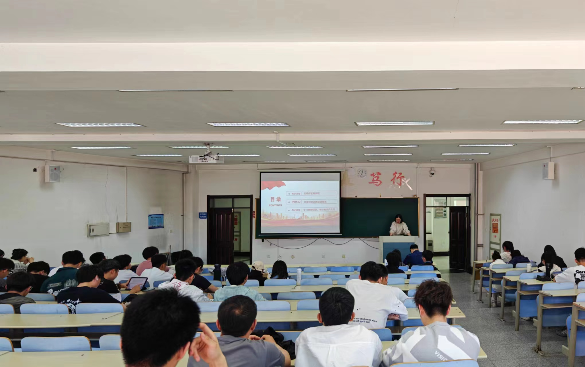 接下来,刘灿娟为学员们讲解了政治纪律、廉洁纪律、群众纪律、工作纪律和生活纪律的具体内容,期间她强调了作为学生党员、学生干部的责任与担当。作为青年党员,更应该以身作则,严格遵守党的各项纪律,坚守党的原则和信念,在日常的学习、工作和生活中做出表率,以实际行动践行党章精神,树立良好的党员形象。这不仅是对自己的要求,更是对党的信任和人民的期待。通过这样的努力,才能在学生中树立起良好的党员形象,为党的事业贡献自己的力量,为社会主义建设增添新的活力。