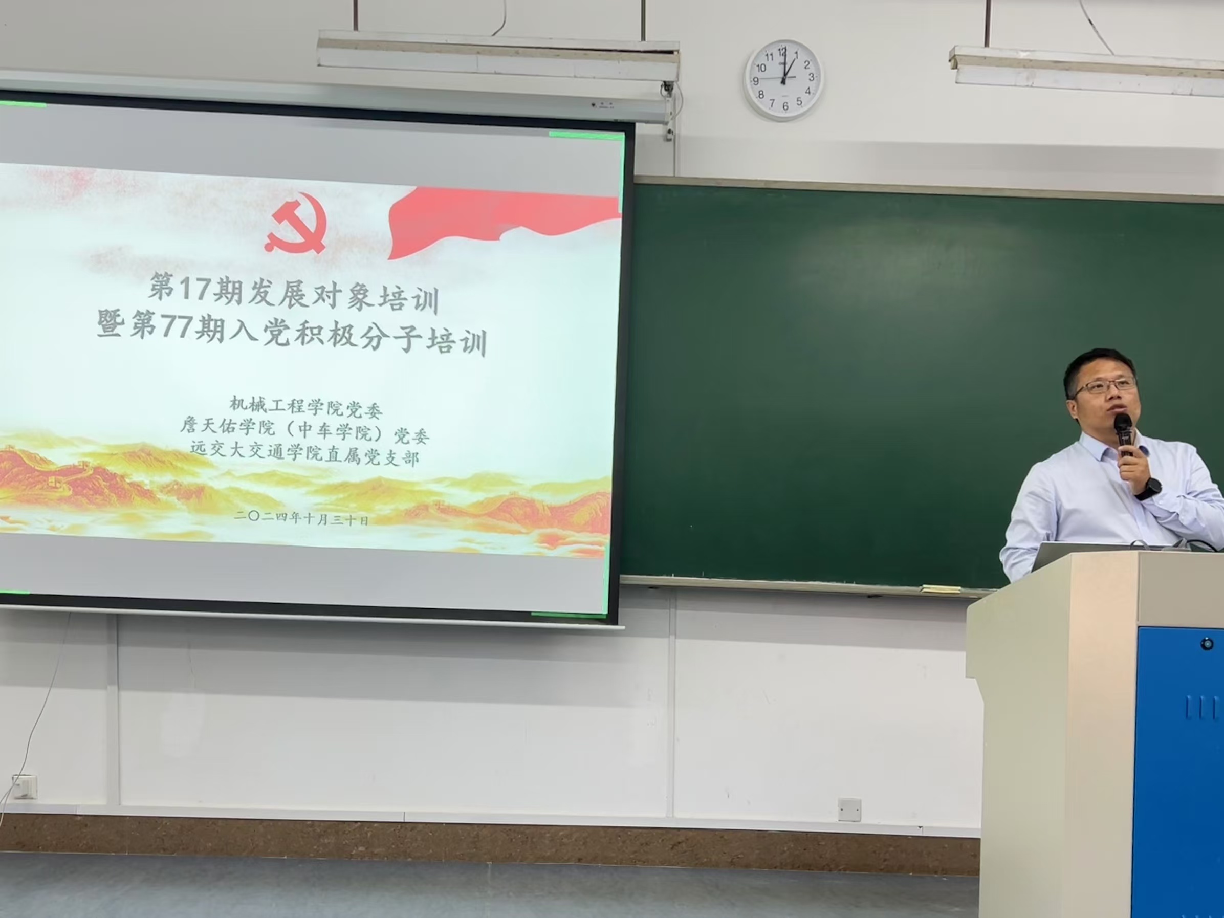 党委在旅顺校区二期教学楼J129教室开展了第17期发展对象暨第77期入党积极分子培训,本次报告由学院组织员荆磊主讲,主题为《团员—>党员》,沙河口校区的学员线上参与了此次培训。