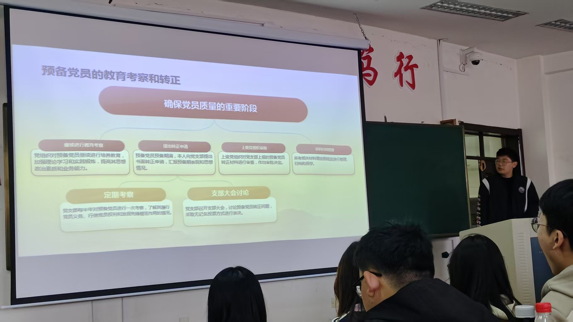 在前期的研讨过程中,新党员学员们围绕“党章及历史变迁”、“伟大建党精神解读”、“党龄与党籍制度的历史变迁”等主题,发展对象学员们围绕“如何端正入党动机”、“党员的权利和义务内涵及历史变迁”、“党员发展流程”等主题,入党积极分子学员们围绕“如何做一名合格党员”、“入党誓词的历史变迁”等主题进行热烈的探讨和分享,取得了良好的效果。在今天的汇报会上,各组学员以PPT的形式分享了研讨成果。