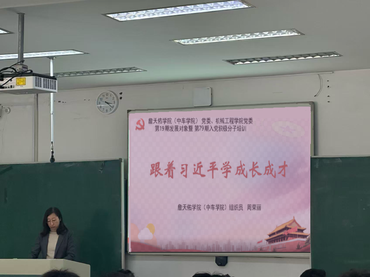 党委在S-433教室开展2025年秋季学期新党员培训暨第19期发展对象培训沙河口校区第五讲,由学院组织员周荣丽主讲,主题为《跟着习近平学成长成才》,沙河口校区学员线下参加。