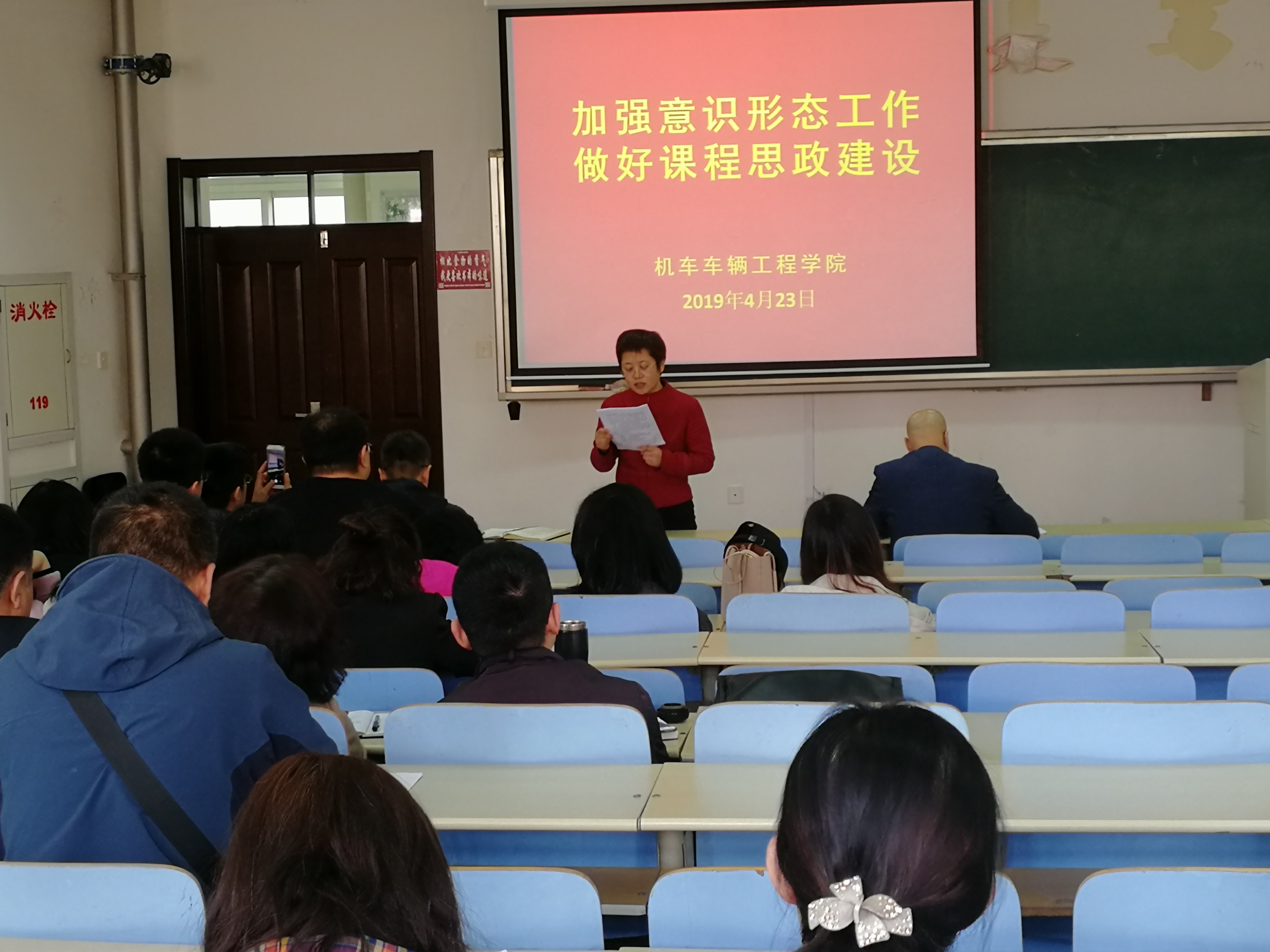 会议首先集中学习了习近平总书记关于意识形态工作的重要指示。接着,学习了“课程思政”的有关内容。会议强调,全体教师要牢固树立“课程思政”的理念,准确把握“课程思政”的内容,创新“课程思政”的方法,要结合所教授课程特点开展思想政治工作,从不同学科、不同专业角度,发挥好各门课程的育人功能,提升社会主义意识形态教育的针对性和实效性。