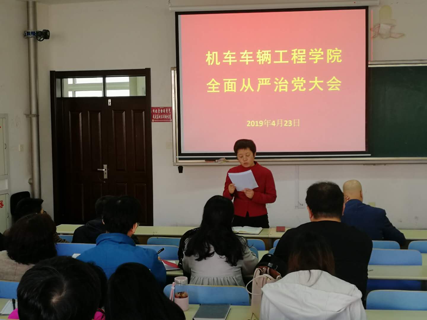 在实验馆431教室召开全面从严治党大会。学院全体教工党员出席了会议。会议由院党总支书记林玉英同志主持。