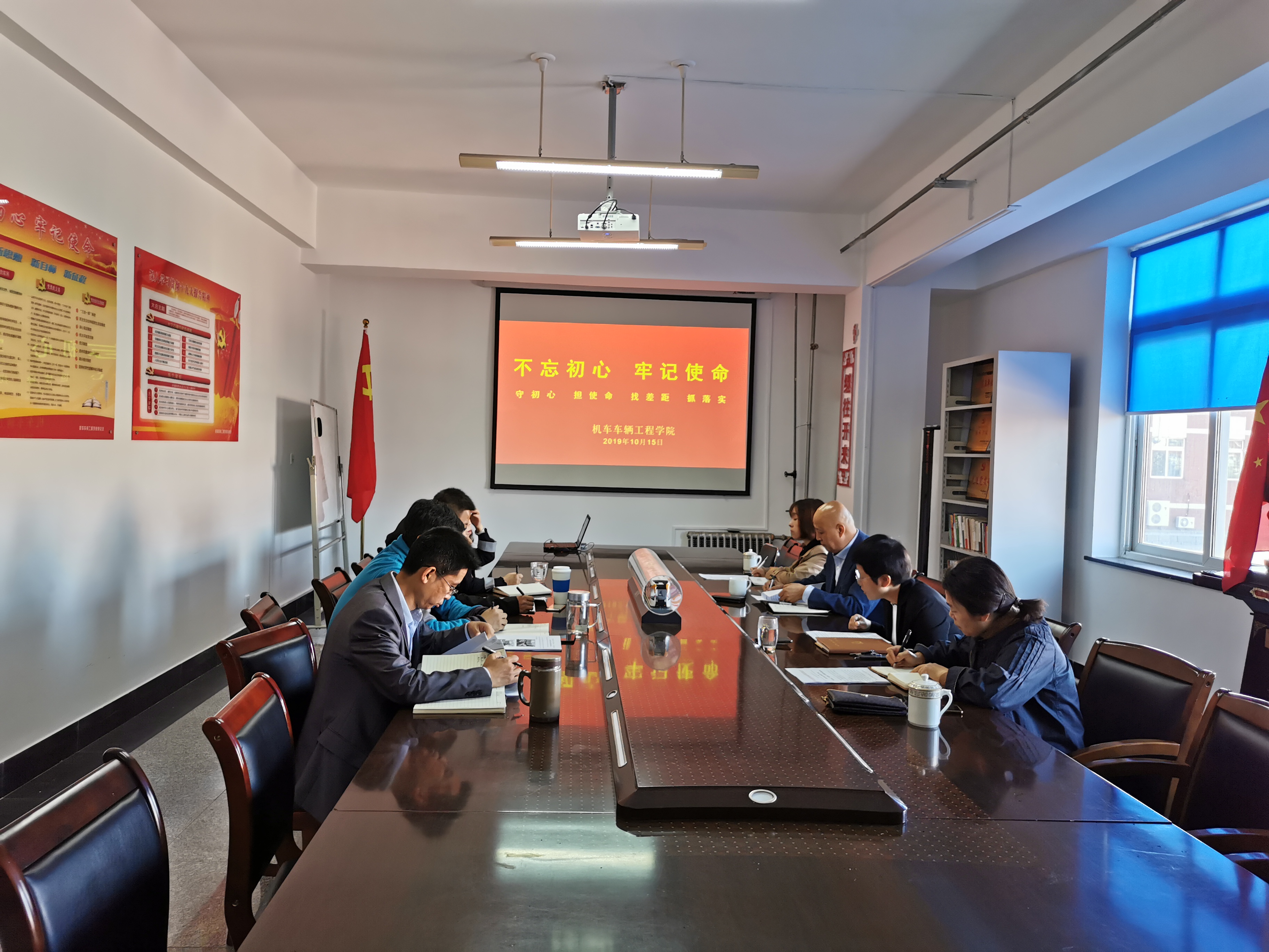 2019年10月15日上午在实验馆612,机车车辆工程学院召开学院领导班子成员调研成果交流会,出席本次会议的有学校第二巡回指导组成员王红珍、齐昆以及全体院领导。