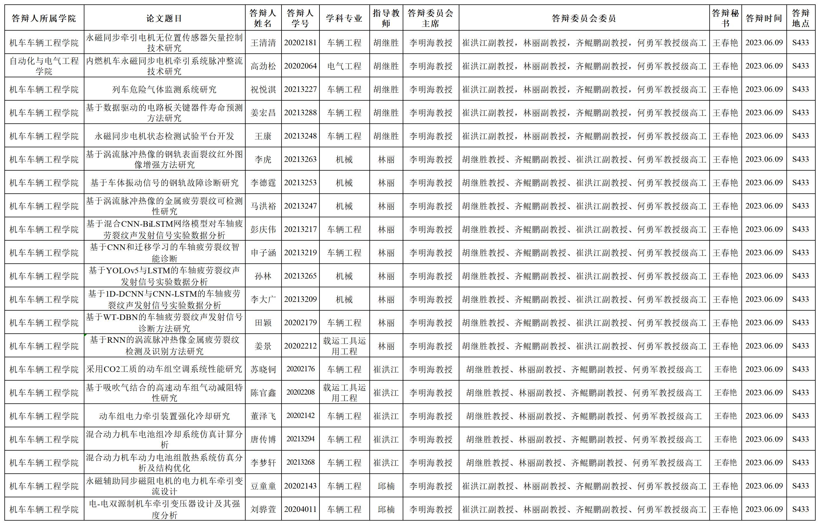 6月9日硕士学位论文答辩公告