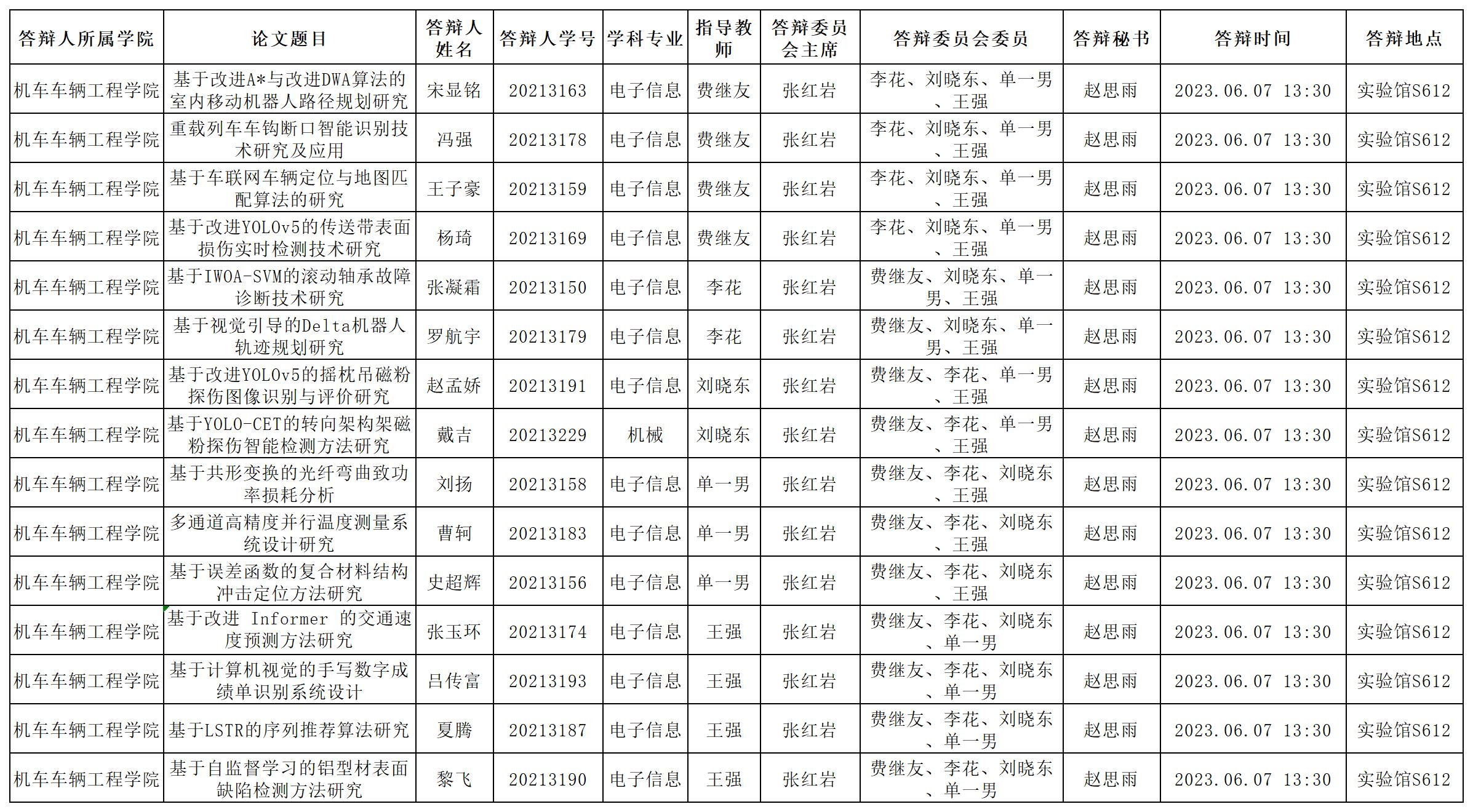 6月13日硕士学位论文答辩公告