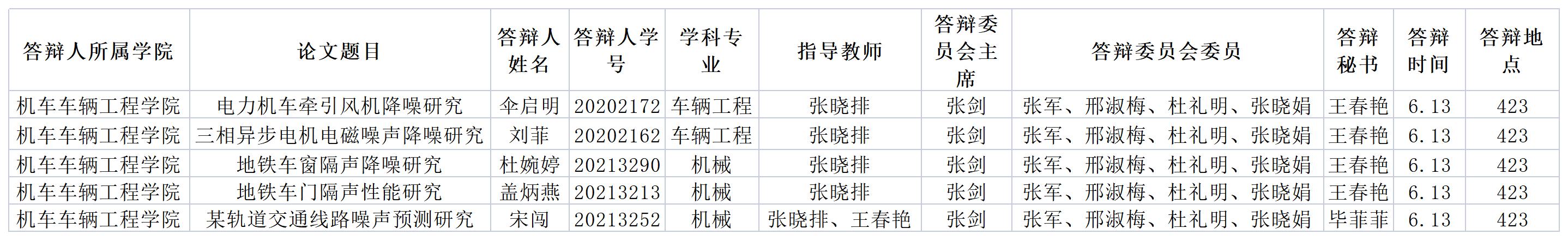 6月13日硕士学位论文答辩公告