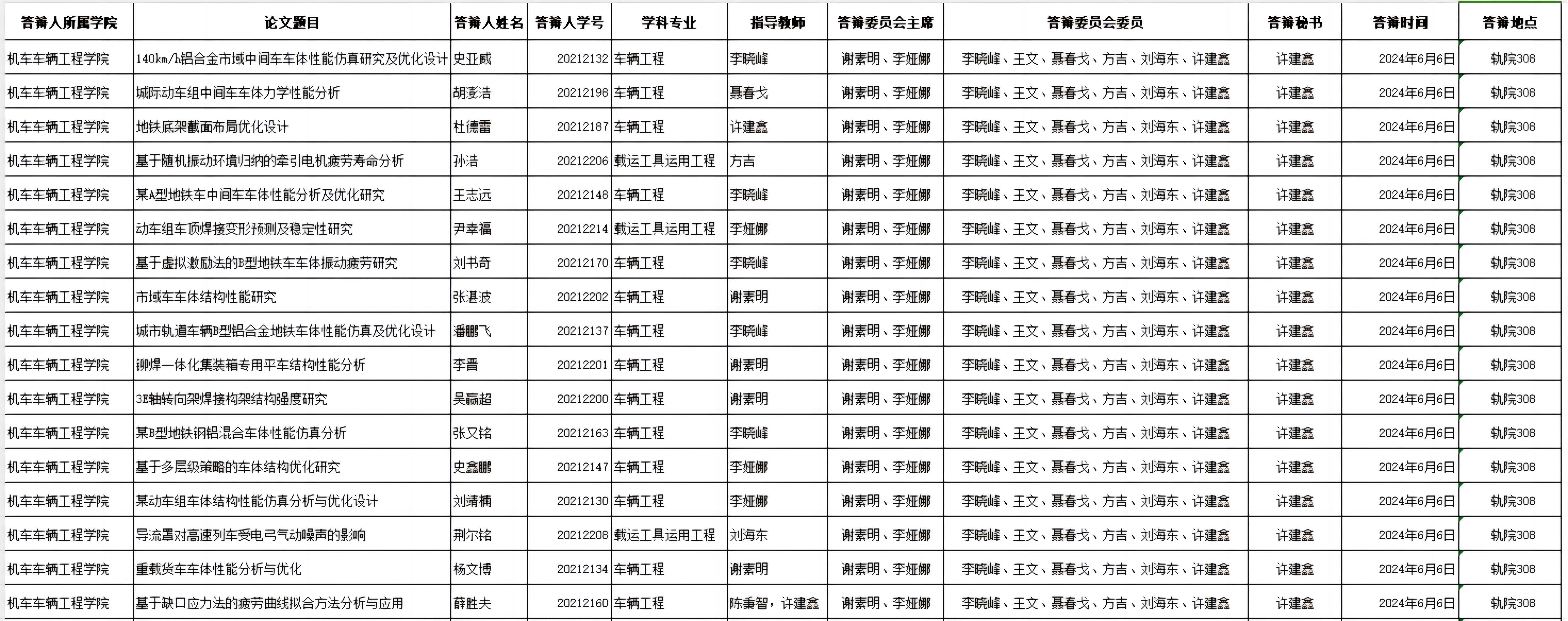 6月6日硕士学位论文答辩公告