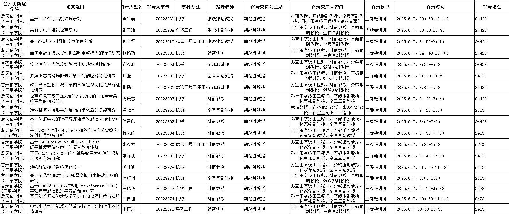 6月7日硕士学位论文答辩公告