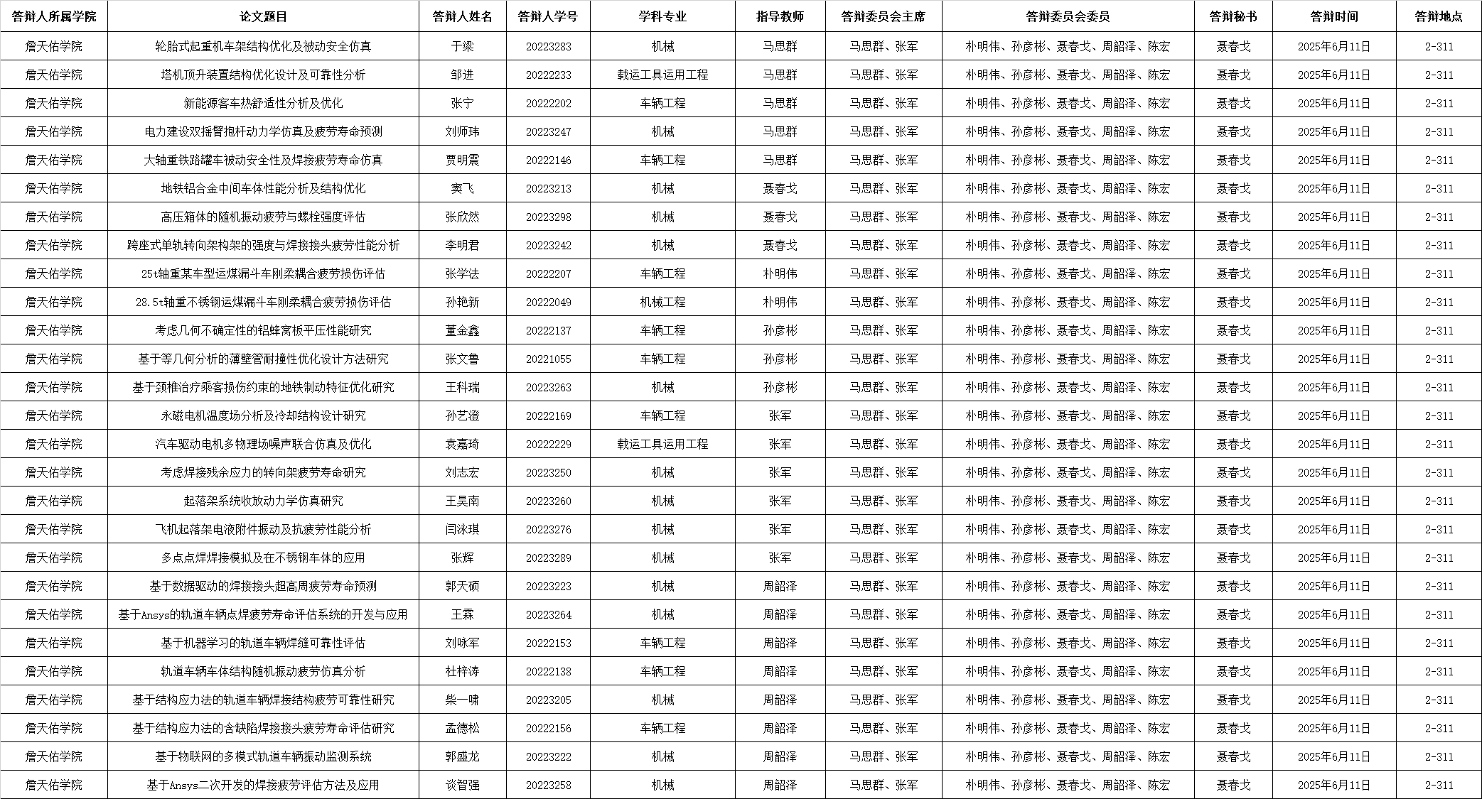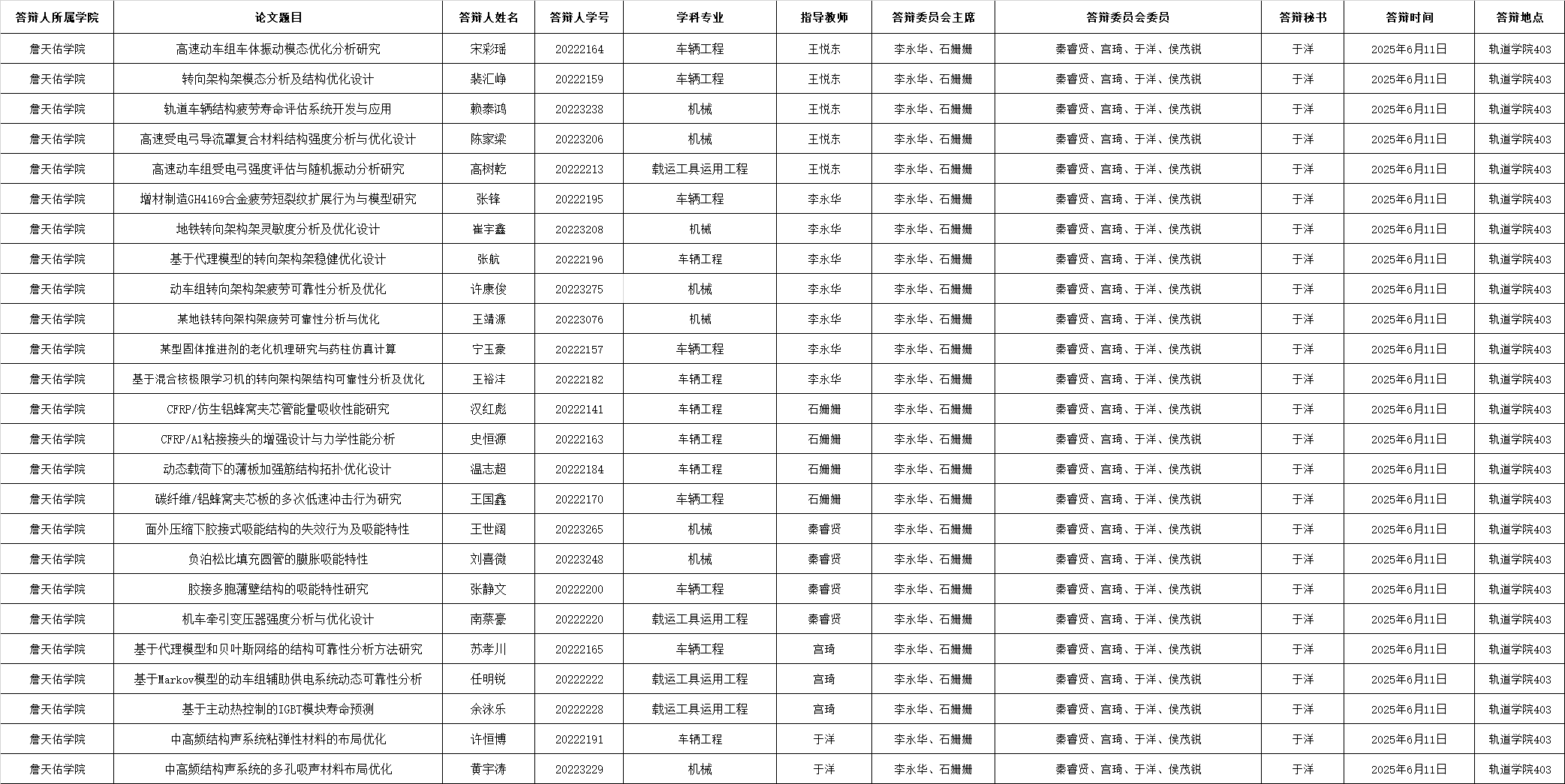 6月11日硕士学位论文答辩公告
