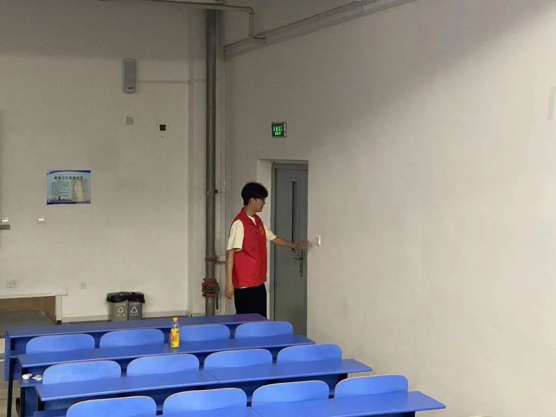 在巡查过程中,志愿者们主动将所有教室、走廊和大厅的灯光进行关闭,严格排查,落实节能环保工作。