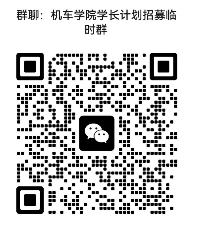 1.个人申请。请填写《机车车辆工程学院2024级本科生新生“学长计划”报名表》与《汇总表》(点击文末附件链接获取),于7月5日17:00前将所填申请表以“专业+姓名”命名,发送至邮箱:[email protected],并扫码进入微信群,接收后续通知。工作。
