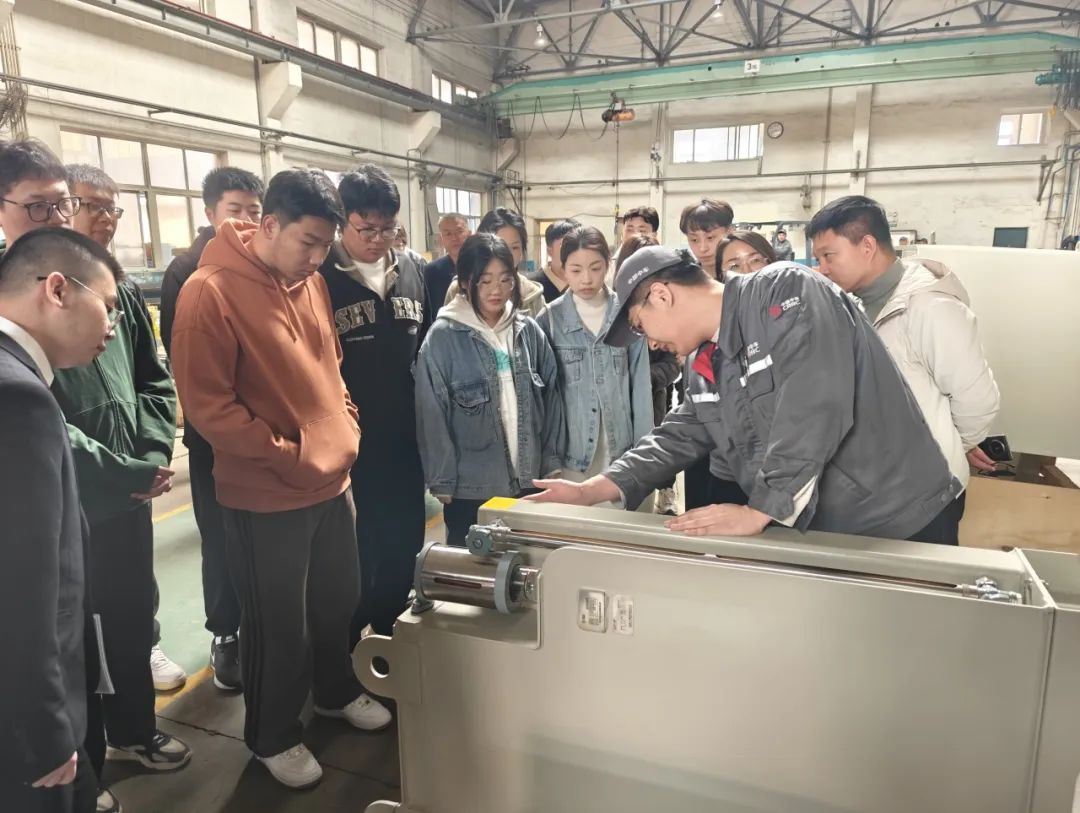 师生代表一行20余人在学院党委副书记郭大为和25届、26届毕业班辅导员老师们带领下,于4月1日走进大连鼎力交通装备制造有限公司,开展以“访企拓岗促就业,产教融合助发展”为主题的实地走访交流活动。此次活动受到了大连鼎力交通装备制造有限公司曲文涛董事长和各部门的热情接待。通过企业参观、校友分享和现场招聘等环节,同学们深入了解了企业发展、行业动态,并与企业就职业生涯发展规划展开互动。