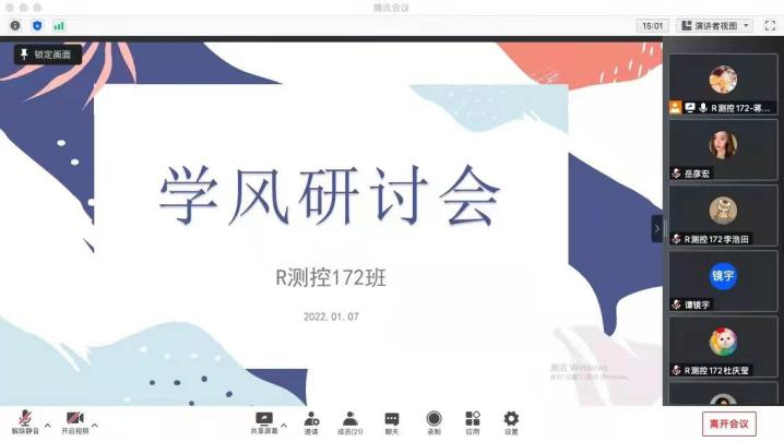为进一步加强学风建设,营造刻苦钻研、开拓创新的学习氛围,促进良好班风和优良学风的形成,增强班级学子学习的积极性和主动性,测控18级、R测控17级、设备18级共6个班级于1月5日至1月8日期间分别开展学风、教风建设主题班会。辅导员线上进行统筹规划、各班班会由各班级支书主持,学习委员辅助,班级全体同学参加。各班班会围绕班级建设与管理、学风班风培育两方面开展。会上同学们积极发言,讨论自己在学习过程中遇到的困难以及解决办法,对学院教学工作提出意见和建议。