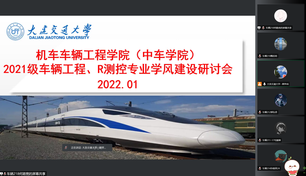 学风是学校在长期办学实践中形成的求学、教学、治学的风气,优良学风是大学的立校之本。1月8日,2021级车辆工程、R测控专业线上召开学风建设研讨会。本次会议由辅导员崔祥成主持,全体学生干部、寝室长及部分学生家长参会。会议分为三部分,首先由辅导员崔祥成通报学院大一上学年的成绩情况,其次是由十个班的代表进行经验分享,总结各班在上学期的学习方法和下学期目标,最后崔老师进行假期相关要求说明并对下学年学院成绩寄予更高的期望。