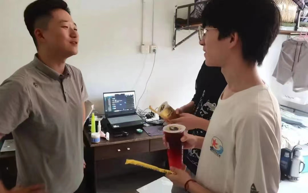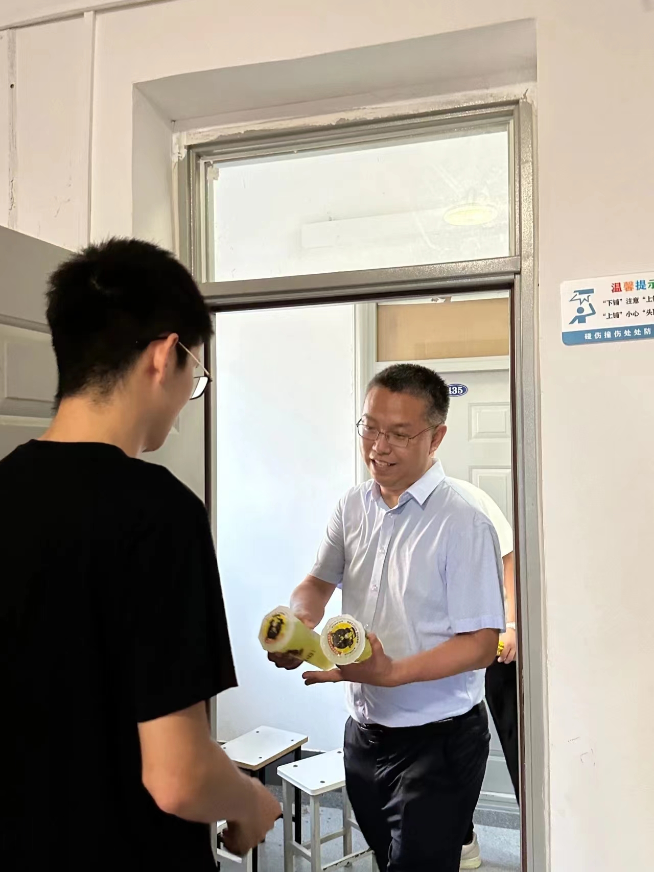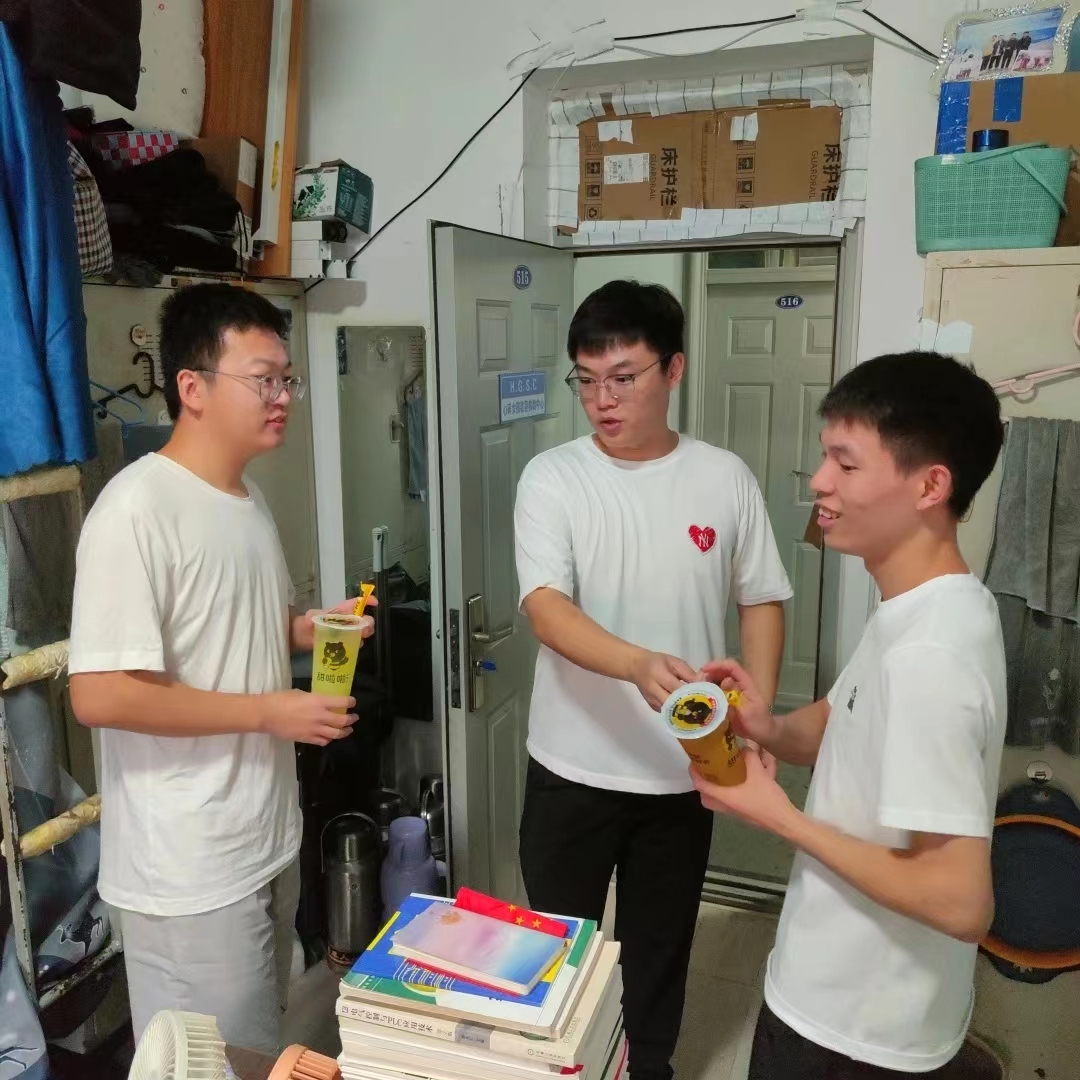 才感盛夏,忽而立秋,学院为每位留校学生送上“秋天的第一杯奶茶”,让学生充分感受到了学院的关怀和温暖。郭大为和两位辅导员询问了留校学生的生活情况、学习进度,为同学们在炎热夏季坚持学习的拼搏精神点赞,嘱咐学生要注意劳逸结合、保持积极的心态,同时更要注意宿舍安全、饮食安全等。在走访宿舍的过程中,师生围坐一起,同学们也反映了一些学习和生活上的问题,学院表示将尽最大努力为大家解决。