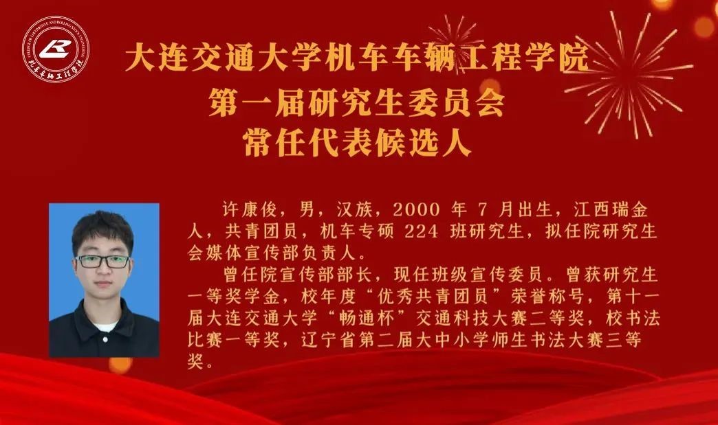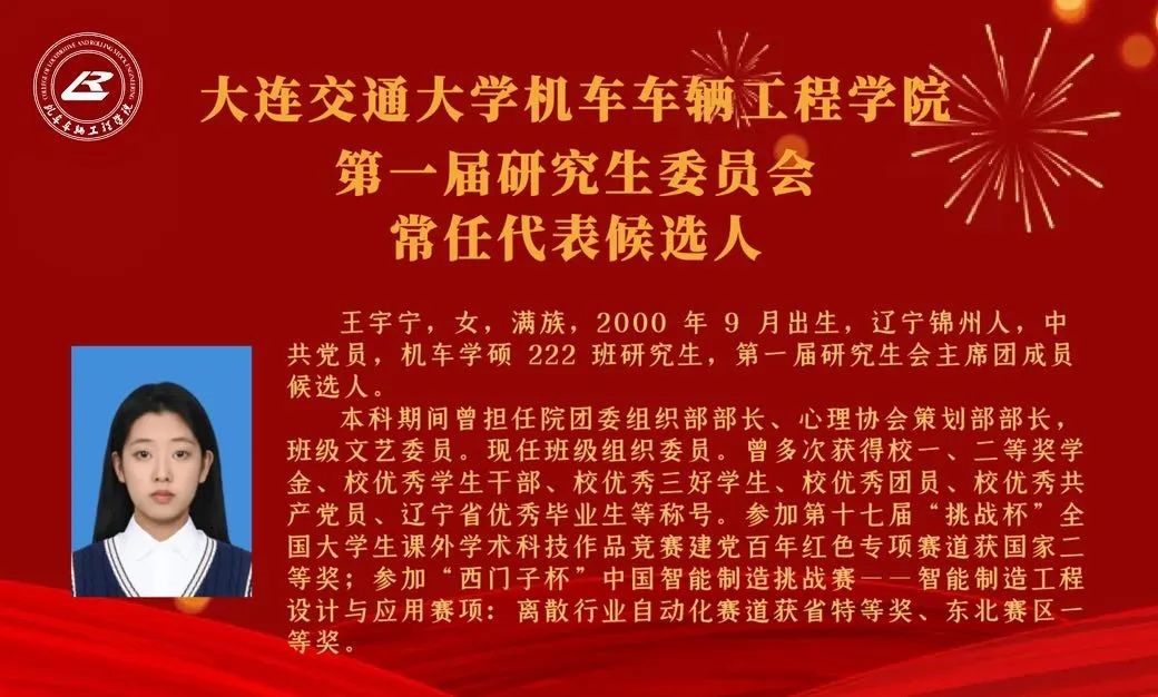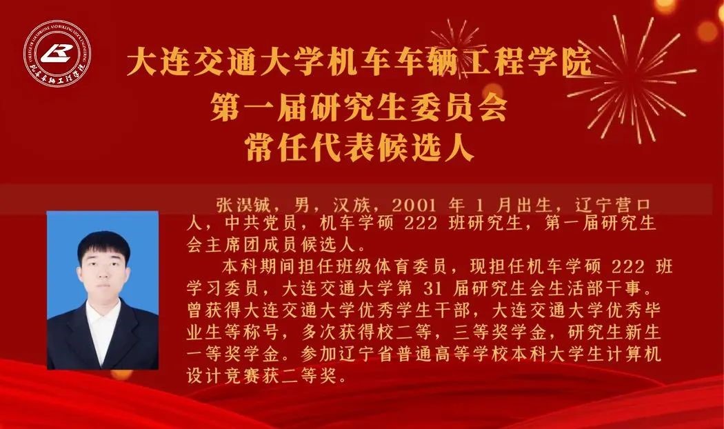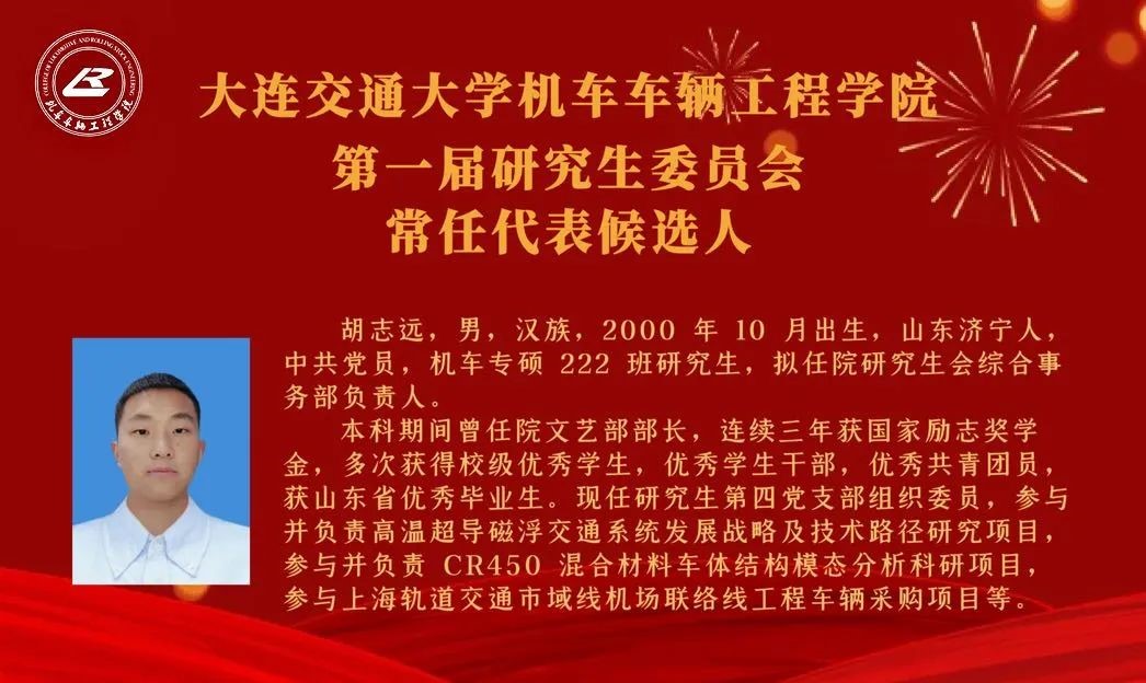 【机车研代会】机车车辆工程学院第一次研究生代表大会研究生委员会常任代表候选人简介