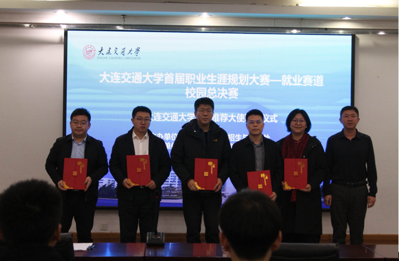 首届大学生职业规划大赛就业赛道决赛在沙河口校区图书馆多功能厅举办。决赛邀请到新东方大连学校副校长马光旭、中铁建设集团华北分公司党委副书记汤强、中车大连机车车辆有限公司人力资源部副部长李铭、中国铁建大桥局一公司人力资源部(党委干部部)部长林君德以及我校学生心理健康教育与咨询中心教师刘薇担任评委。